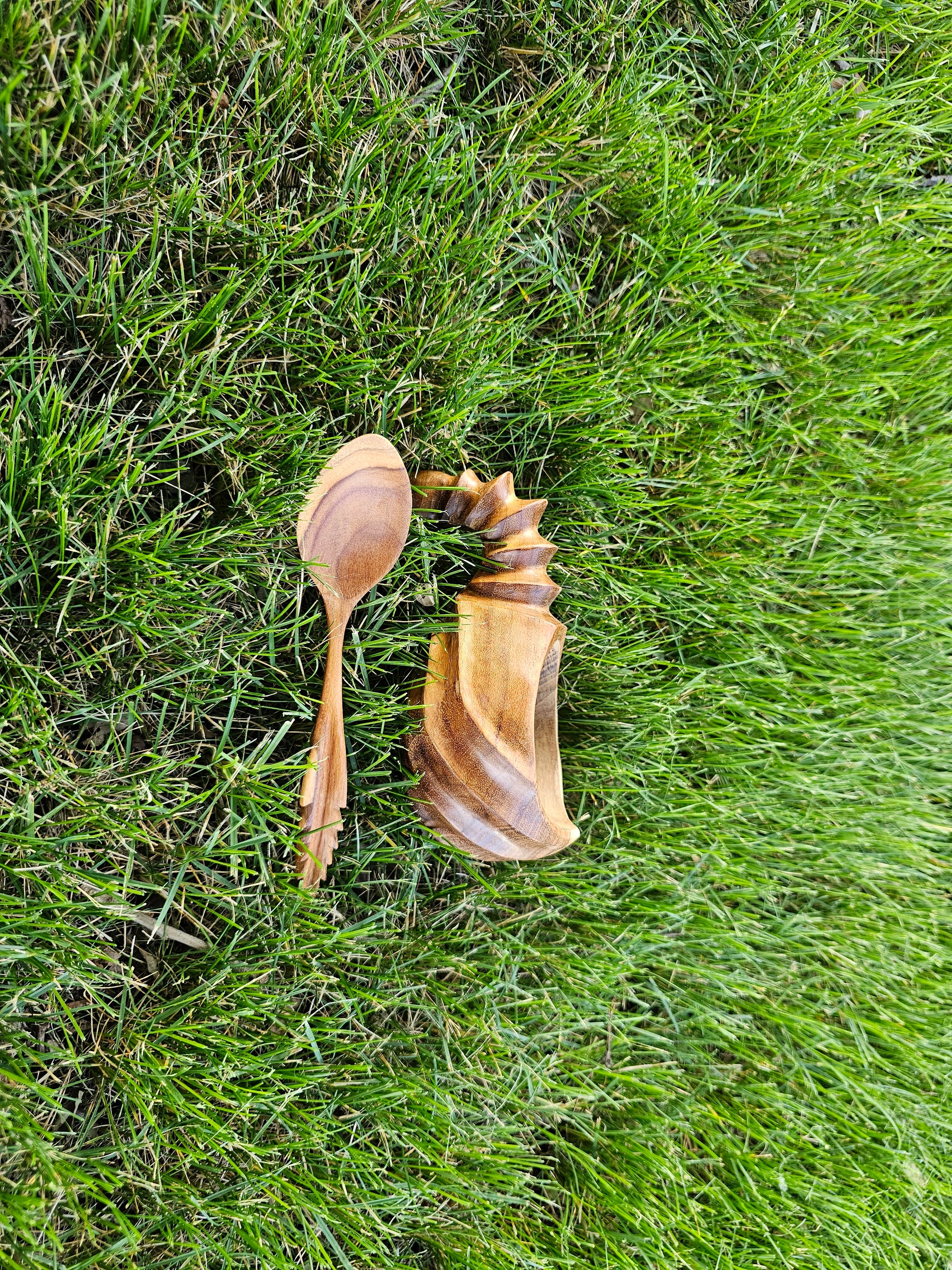 Kuksa wood mug made from teak wood. Handle style inspiration by seahorses